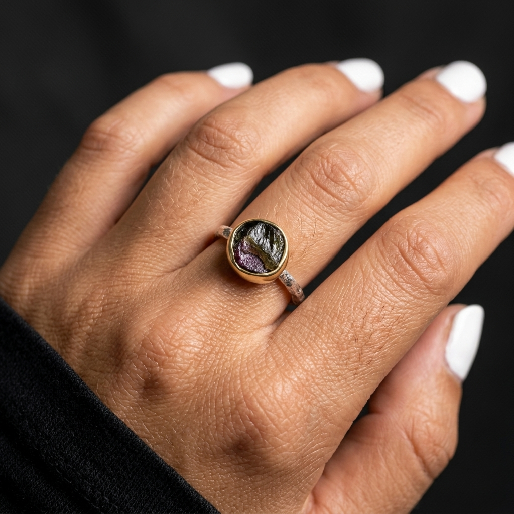 Wybierając ten projekt, zyskujesz przedmiot wykonany z poszanowaniem naturalnej struktury minerału. To rzemiosło, które nie próbuje poprawiać natury, lecz oprawia ją w sposób trwały i przemyślany. Pierścionek wysyłamy w autorskim opakowaniu, gotowy do dopełnienia Twojej osobistej kolekcji unikatów.