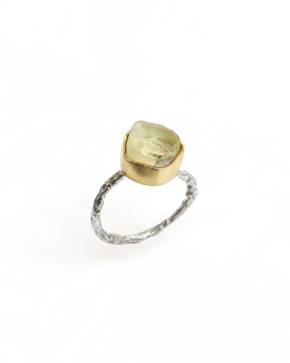 Srebrny pierścionek z surowym cytrynem i złoconą oprawą – Unikat MMP7
