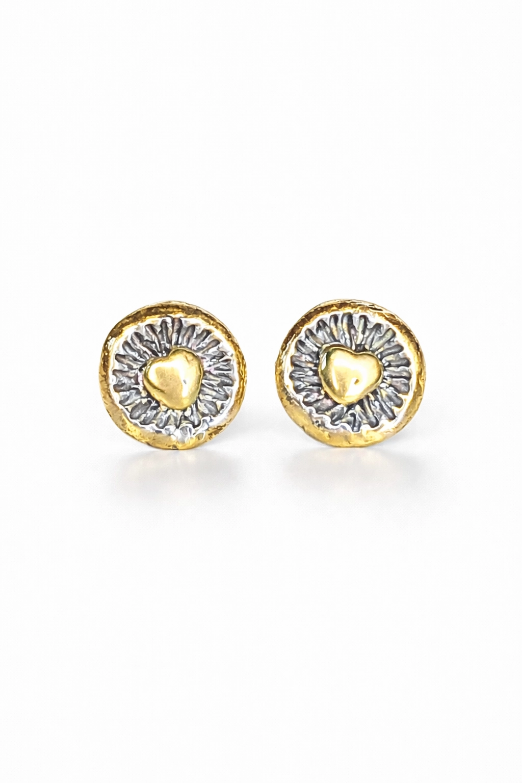 Kolczyki „Serce” – sztyfty z fakturą i złotym akcentem