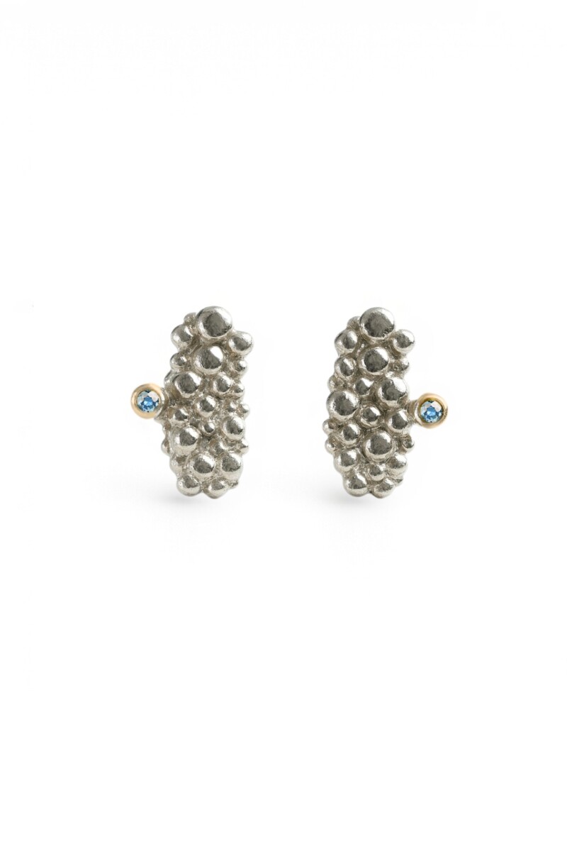 W tej wersji kolczyków z kolekcji Wenus w nieregularnej strukturze pojawia się punkt światła – wybrany przez Ciebie kamień naturalny.